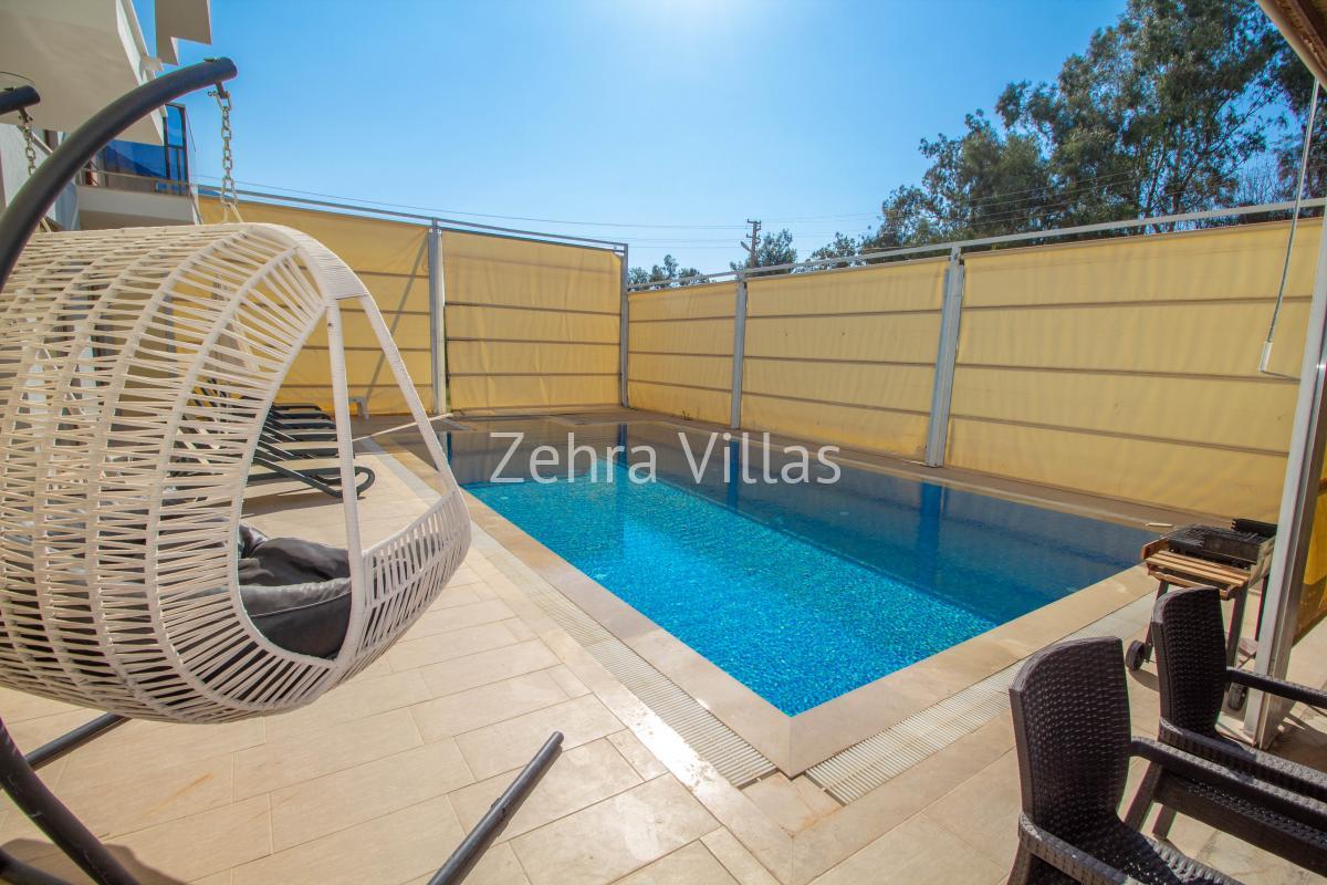 Oldukça geniş ve yeşil bir bahçe içerisinde özel havuz, havuz başı duş, 8 adet şezlong, yeteri kadar şemsiye, yemek masası ve sandalyeler bulunmaktadır.
