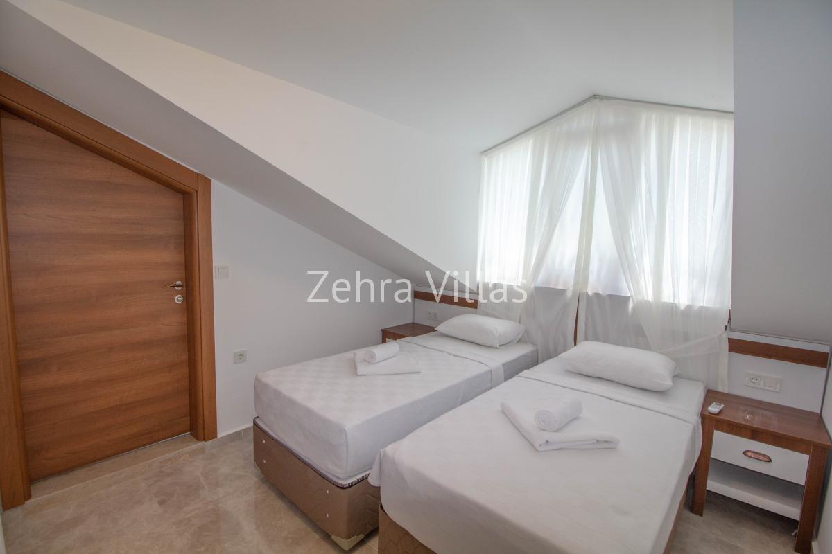 2 adet tek kişilik yatak, ebeveyn banyosu, klima, elbise dolabı bulunmaktadır.