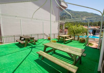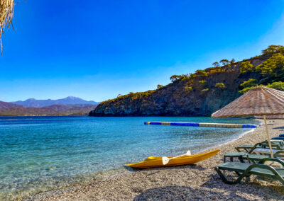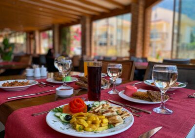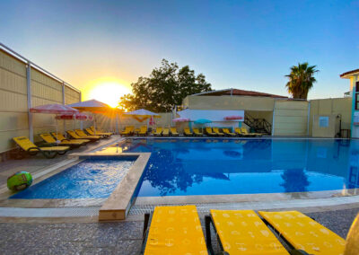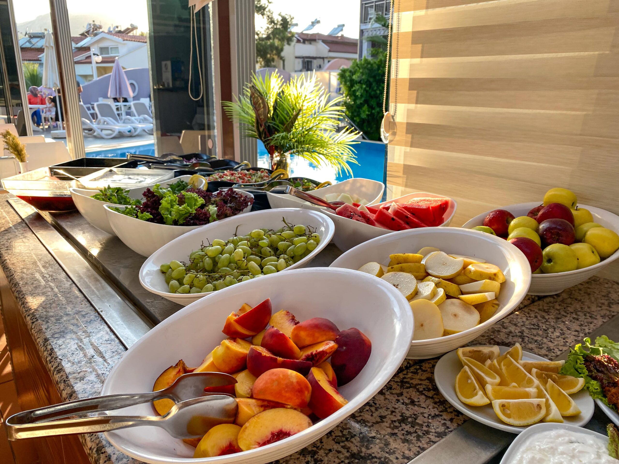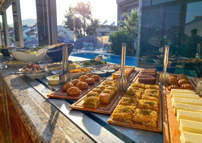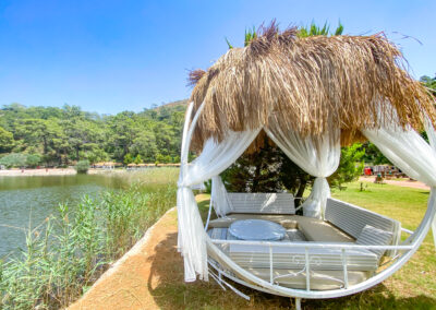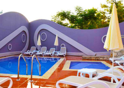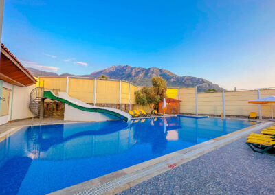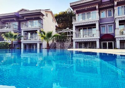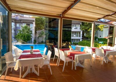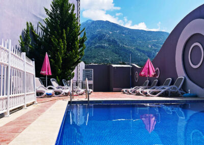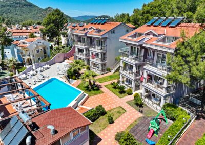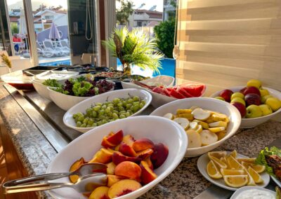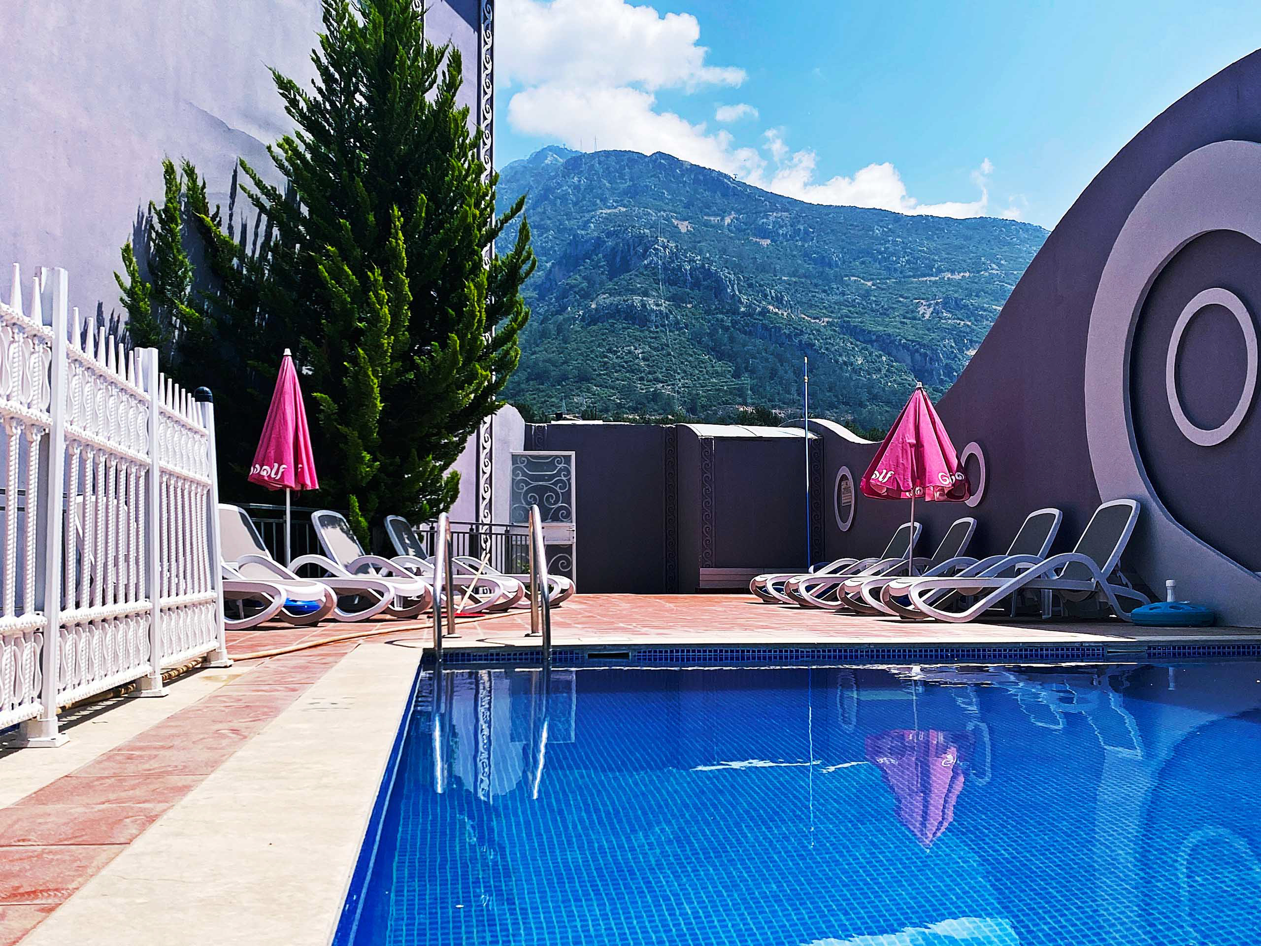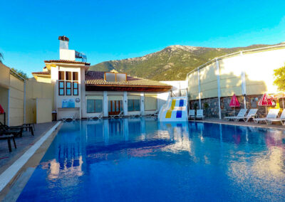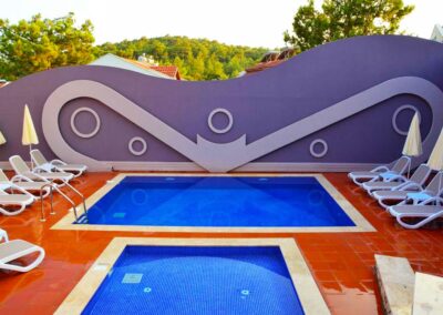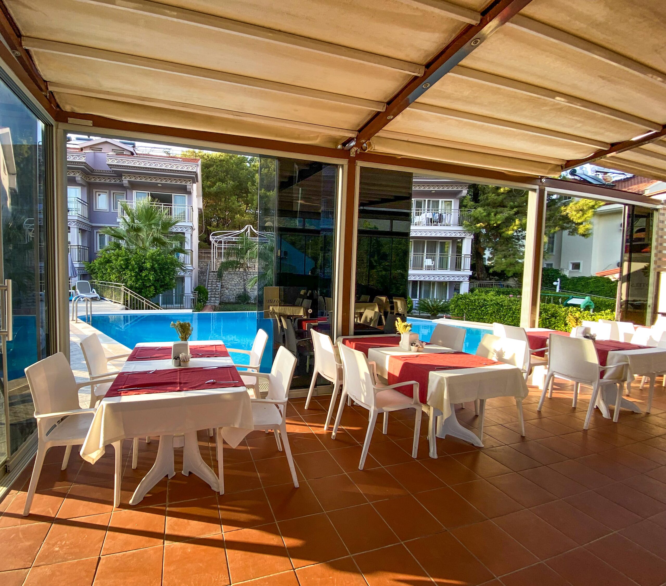 Fethiye de muhafazakar villa konseptinde lüks korunaklı havuzlu villa tatilini otel imkanları ile birleştirdi. Açık büfe Sabah kahvaltısı ve Açık Büfe Akşam yemeği bunun yanında Plaja giden Misafirlerimize öğle yemeği SET MENÜ şeklinde işletmemizin ikramı olarak verilmektedir. Türkiye de ilk olarak bayanlara özel plaj hizmeti ile Türkiye’de muhafazakar villa konseptinde bir çok ilki gerçekleştirmiştir.