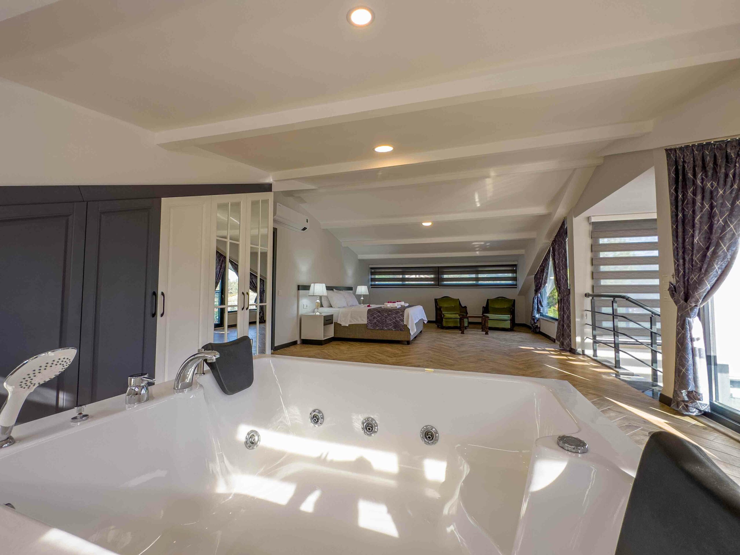 üçüncü katta bulunan ana yatak odasında bir adet çift kişilik yatak mevcuttur,jakuzi ve  banyosu olup klima,makyaj masası ve elbise dolabı bulunmaktadır.